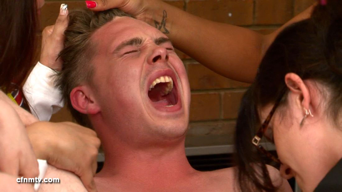 In the new video at CFNMTV.com, for spoiled rich kid Joel, used to being pandered to all his life, being roughly manhandled comes as a complete shock. When he walked into the cavernous assembly hall he had no idea that he would end up stripped naked. Now he’s totally at the mercy of his strict form teacher Miss Holten who is determined to find the cause of his apathy. Egged on by his mother she proceeds to demonstrate her methods for controlling Joel’s wayward erections.